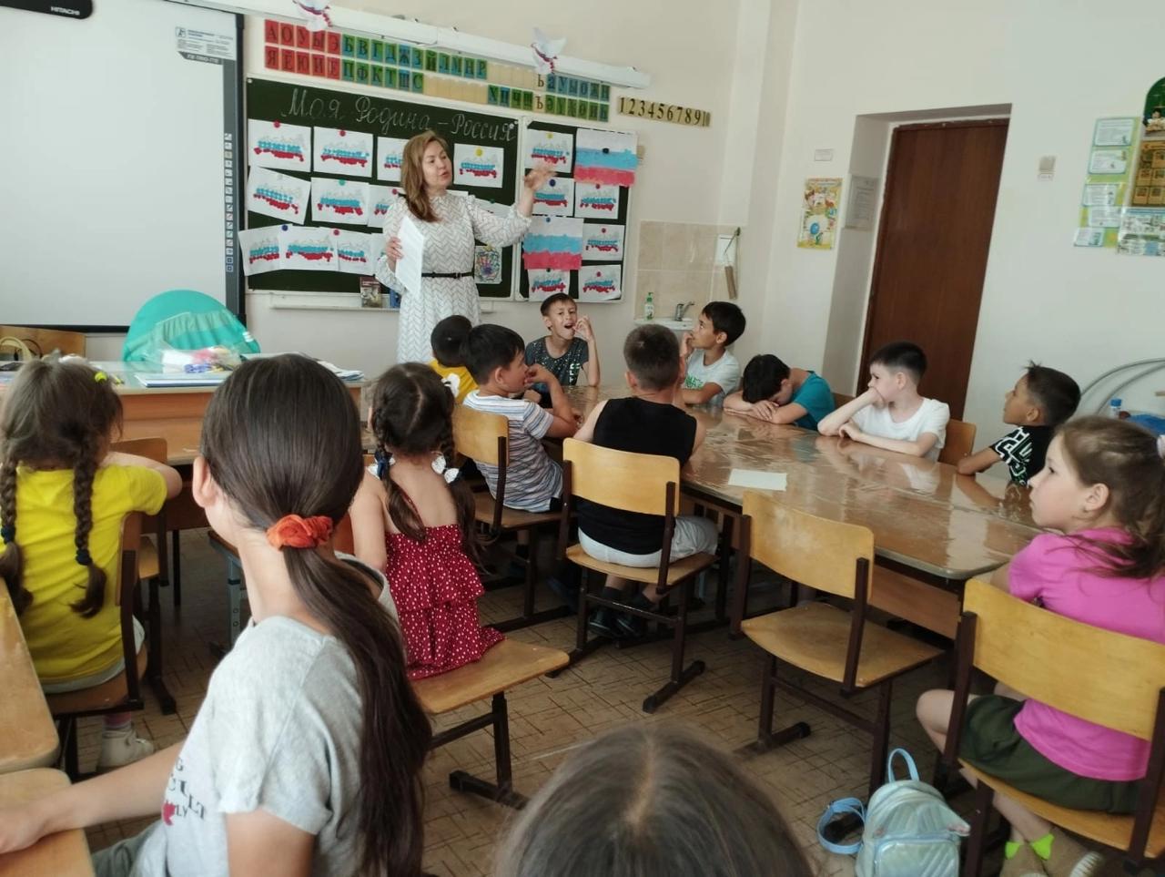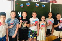 В пришкольном лагере состоялось празднование Дня России. Воспитатели ознакомили с историей праздника. Ребята узнали много нового и интересного о государственных символах России: гербе, флаге и гимне. С удовольствием участвовали в интеллектуальной викторине «Моя Родина - Россия», на различных станциях выполняли задания по истории, географии России, составляли русские пословицы и читали стихи о Родине.Мәктәп яны лагеренда Россия көнен бәйрәм итү булды. Тәрбиячеләр бәйрәм тарихы белән таныштырдылар. Балалар Россиянең дәүләт символлары: герб, флаг һәм гимн турында күп яңа һәм кызыклы нәрсәләр белделәр. «Минем Ватаным - Россия " интеллектуаль викторинасында рәхәтләнеп катнаштылар, төрле станцияләрдә Россия тарихы, географиясе буенча биремнәр үтәделәр, Рус мәкальләрен төзеделәр һәм ватан турында шигырьләр укыдылар.