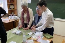 Коры душ әзерләү буенча мастер-классны безнең бистәнең Ветераннар советы активистлары Любовь Николаевна һәм Дәүләтова Диләрә Григорьевна үткәрделәр.Мәктәп укучылары коры душ ясауның барлык этаплары белән таныштылар: тукыманы кисү,тукыманы махсус сыеклык белән чылату, махсус ЗИП-пакетларга төрү. Беренче партия, 57 данә, балалар хатлары белән бергә якын арада фронтка китәчәк.