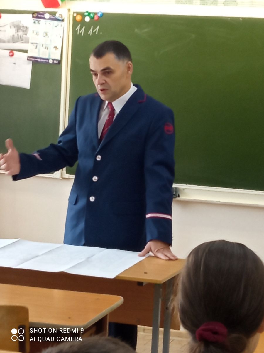 Сегодня урок ОБЖ в 9 классе прошел не обычном формате. На урок был приглашен родитель - желез