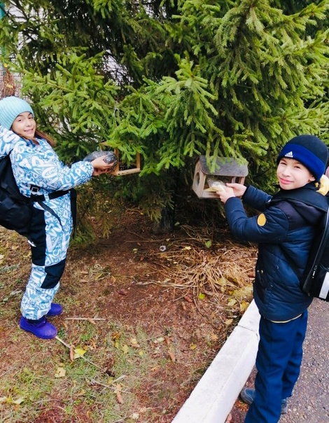 12 ноября, — Синичкин день, когда эти яркие птицы, прилетевшие к нам на зимовку, начинают активно наведываться в кормушки в городских парках. По народным приметам, именно в это время зимующие птицы перебирались поближе к человеческому жилью — источнику тепла и пищи. По традиции в этот день чинили старые и изготавливали новые кормушки. Домики с кормом для синиц развешивали поближе к домам. Присутствие этих птиц по соседству с людьми — хорошая примета. Ученики 3А класса с удовольствием присоеденились к этой акции."Кошларны ашат!" акциясе Песнәкләр көнендә!