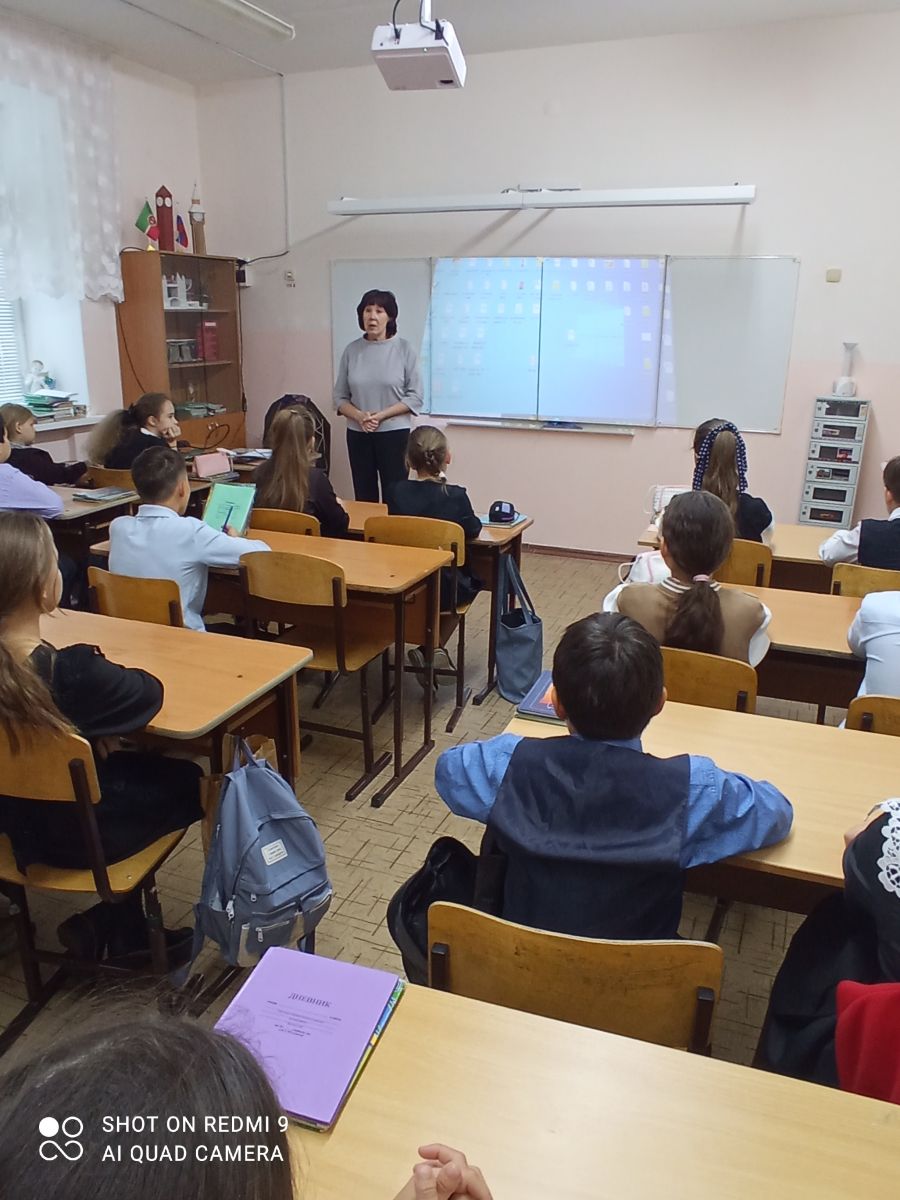 12 октябрьдә мәктәптә «Россия эштә» темасына чираттагы һөнәри юнәлеш бирү дәресе узды. Максат: Укучыларны импортны алмаштыру, суднолар төзү, авиация, суднолар йөртү, урман сәнәгате кебек төрле һөнәрләр дөньясы белән таныштыру. Дәрес барышында укучыларга видеороликлар күрсәтелде, анда Россия белгечләре күренекле уңышларга ирешкән тармаклар, Ватан белгечләренең әһәмияте һәм аларның уйлап табулары турында сөйләде. Балалар видеороликлар турында актив фикер алыштылар, сорауларга җавап бирделәр.