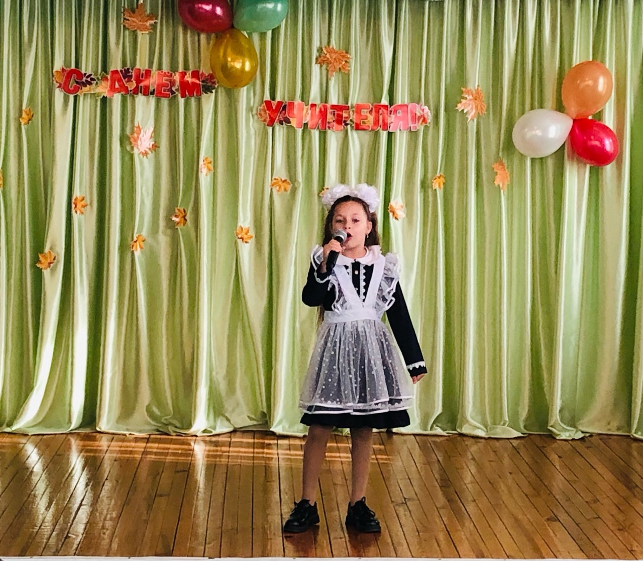 этот день в школе. Праздничная программа концерта – самый замечательный подарок, приготовленный учениками своим учителям. Прекрасные выступления, подготовленные его участниками, встречались аплодисментами, радовали зрителей своими песнями, танцами, сольными номерами. На концерте присутствовали ветераны педагогического труда, им особые слова благодарности