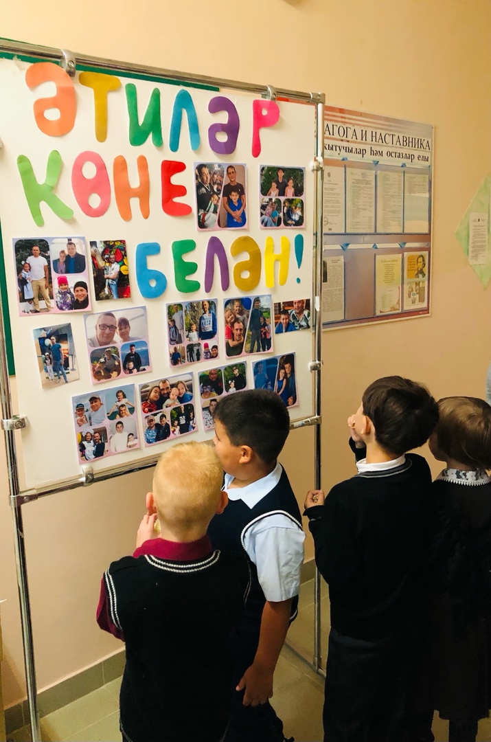 Бәйрәм алдыннан мәктәптә фотокүргәзмә оештырылды, балалар фотоларны кызыксынып карадылар һәм әтиләрен фотода күреп шатландылар!!! -