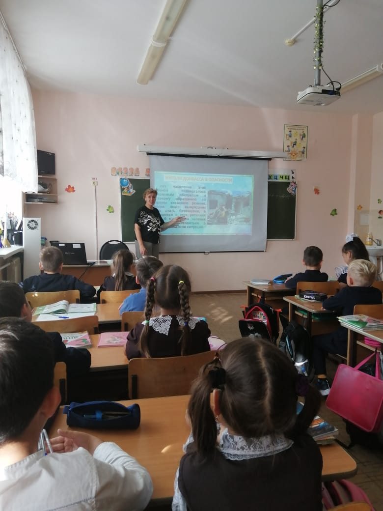 й областей с Российской Федерацией. В рамках празднования этой даты классные руководители школы провели классные часы «Мы вместе!».Они напомнили ученикам историю вхождения новых регионов в состав Российской Федерации, когда по результатам референдумов была восстановлена историческая справедливость, о том, что жители Донбасса с 2014 года боролись против проявления нацизма и фашизма. В сердце, в сознании людей Донбасс всегда был и остается неотъемлемой частью России. Сегодня, Россия вновь пришла на помощь, она не бросила многострадальный народ Донбасса, Херсона и Запорожья, помогла остановить неонацистов и сделать свой выбор. Ребята смотрели видеоролики о России, и её защ