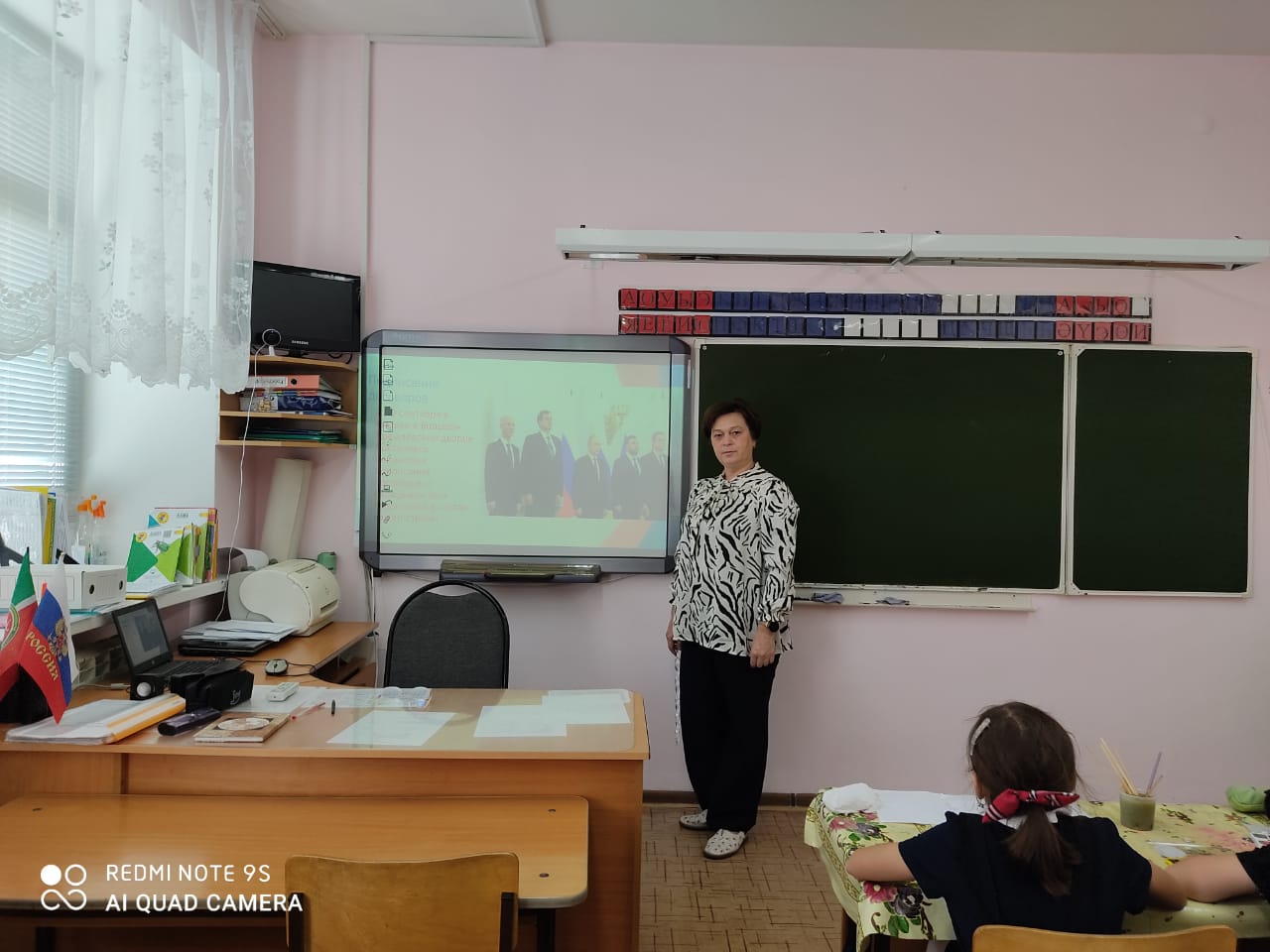 итниках, ответили на вопросы интерактивной викторины «Моя Родина – Россия», вспомнили пословицы и поговорки о нашей Родине. 30 сентябрь - Донецк Халык Республикасы, Луганск Халык Республикасы, Запорожье һәм Херсон өлкәләренең Россия Федерациясе белән берләшү көне. Бу көнне бәйрәм кысаларында мәктәпнең сыйныф җитәкчеләре "Без бергә!» исеме астында класс сәгатьләре үткәрделәр. Алар укучыларга яңа төбәкләрнең Россия Федерациясе составына керү тарихын, референдум нәтиҗәләре буенча тарихи гаделлек торгызылуын, Донбасс халкының 2014 елдан нацизм һәм фашизм күренешләренә каршы көрәшүен искә төшерде. Йөрәктә, кешеләрнең аңында Донбасс һәрвакыт Россиянең аерылгысыз өлеше булган һәм булып кала. Бүген Россия кабат ярдәмгә килде, ул Донбасс, Херсон һәм Запорожьеның күп газаплар кичергән халкын ташламады, неонацистларны туктатырга һәм үз сайлауларын ясарга ярдәм итте. Балалар Россия һәм аның яклаучылары турында видеороликлар карадылар, «Минем Ватаным – Россия» интерактив викторинасы сорауларына җавап бирделәр, Туган илебез турында мәкальләрне һәм әйтемнәрне искә төшерделәр.