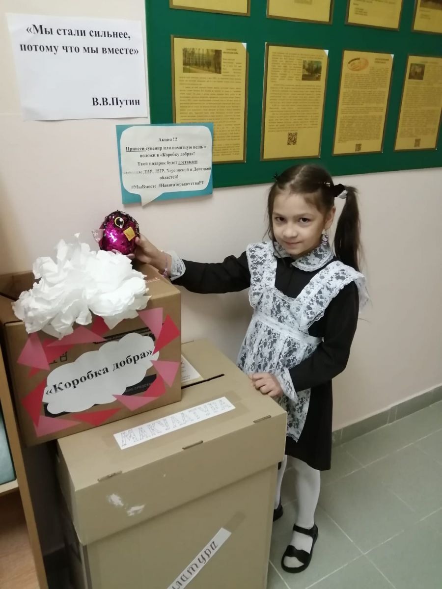 и для жителей новой России.Бу көннәрдә мәктәптә "Яхшылык тартмасы" акциясе кысалырында, укучылар тарафыннан Яңа Россиядә яшәүчеләр өчен кирәкле әйберләр җыйналды.