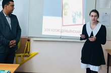Советником директора по воспитанию в сотрудничестве с учителем истории Рухиным Ф.Ф. был организован просмотр документального фильма «Зоя Космодемьянская» с последующим обсуждением в формате открытого микрофона, в котором дети обсудили подвиг разведчицы.Тәрбия буенча директор киңәшчесе тарих укытучысы Рухин Ф.Ф. белән берлектә «Зоя Космодемьянская» документаль фильмын карау оештырыла, аннан соң Ачык микрофон форматында балалар разведчица батырлыгы турында фикер алыштылар.