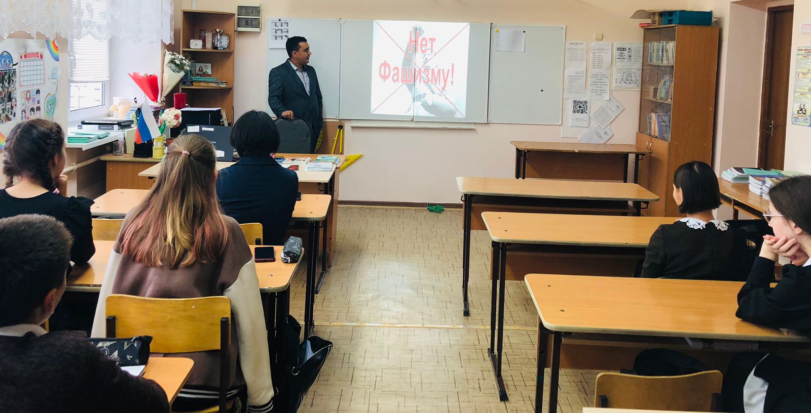 Сегодня учителем истории Рухиным Ф. Ф. под руководством советника директора по воспитанию прошли классные часы посвящённые дню памяти жертвам фашизма.