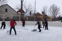 Шугалакны чистартуда балалар белән бергәләп әти-әниләр дә катнаша. Рәхмәт аларга! / В чистке катка принимают участие не только дети, но и родители. Спасибо большое!