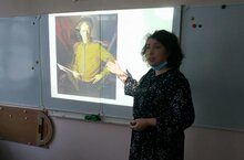 В 10-11 кл. прошла встреча с сотрудниками музея К.Васильева. Экскурсоводы в очень увлекательной форме рассказали о жизни и творчестве знаменитого художника. / 10-11 нче сыйныф укучылары бүген музей хезмәткәрләре белән очраштылар.