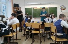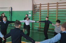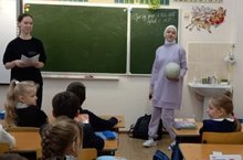 Обучающиеся 7-9 кл. в начальных классах провели урок "Спортивная ярмарка"./ 7-9 нчы сыйныф укучылары башлангыч сыйныфлар белән "Спорт ярминкәсе" дип исемләнгән уен дәрес үткәрделәр.