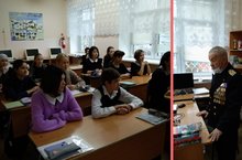 В ходе встречи начальник ГИБДД по Зеленодольскому району Идиятуллин Р.И. рассказал обучающимся о том, как правильно вести себя на дорогах, пешеходных переходах и в общественном транспорте. Он отметил, что использование наушников с музыкой и мобильного телефона недопустимо при переходе проезжей части дороги. Кроме того выразил надежду, что развитие понимания опасности при нахождении на проезжей части детьми-пешеходами позволит снизить дорожно-транспортный травматизм. Начальник ГИБДД напомнил обучающимся о необходимости использования световозвращающих элементов в темное время суток. В конце встречи пожелал детям быть осторожными на дороге.