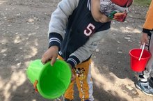 Воспитатель Юсупова Ф. З. "Бәләкәчләр" төркеме әниләре һәм тәрбиячеләре белән берлектә утырткан чәчәкләргә су сибәләр. Тәрбияче Юсупова Ф. З.