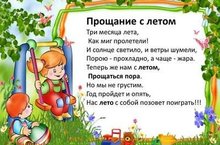 Сегодня, все воспитанники детского сада собрались, чтобы сказать любимому лету: «Прощай! Прощай до следующего года!». А лето красное не спешило прощаться с малышами, продолжало веселиться. Играли в веселые подвижные игры: «Солнышко и дождик», «Летний заплыв». У всех ребят было солнечное и веселое настроение. Славно все повеселились, очень крепко подружились, поплясали, поиграли, все вокруг друзьями стали. Что поделать? Но, однако, настала пора прощаться. «До свидания, лето! Здравствуй осень!