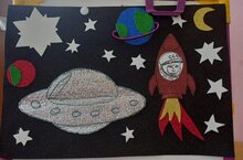 Коллективная работа ко Дню космонавтики. Группа "Сказка". Воспитатель Насибуллина Г.С. Космонавтика көненә коллектив эш. "Әкият" төркеме. Тәрбияче Насибуллина Г. С. 12.04.2024