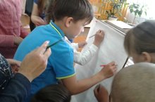 После завтрака ребята потрудились на пришкольном участке, убрали сорняк и мусор. В течение дня был проведен фестиваль народной песни « Край родной, навек любимый!», посвященный Году родного языка и родного края. Также был проведен мастер класс «Чудеса из ничего» , где ребята старших классов из пластиковых бутылок собрали «Солнышко», ученики начальной школы работали над аппликацией «Какие интересные животные из кругов». Во второй половине дня были спортивные игры: соревнования по футболу, «Безопасное колесо» на лучшее вождение велосипеда