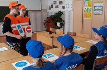 Урок безопасности «Безопасные дороги» 29.04.2021 26 апреля члены отряда ЮИДД «Веселый перекресток» для обучающихся начальной школы провели Урок безопасности дорожного движения, демонстрируя запрещающие и разрешающие дорожные знаки для пешеходов, для велосипедистов, так как весна время активности велосипедного движения среди детей.