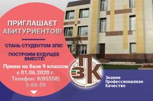 ГАПОУ "Заинский политехнический колледж" приглашает абитуриентов. Прием набазе 9 классов с 1.06.2020. телефон 8 855 85 56 59.