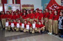 Сегодня 5 учащихся нашей школы, 3 юошей и 2 девочки, на слете юнармейцев присягали в верности идеалам добра и служения своей отчизне. Взамен по окончанию школы ушедшим юнармейцам приходят новые. Правое дело продолжается.