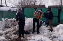 В дни весенних каникул ребята 9 класса оказали шефскую помощь. Они раскидывали снег около двора, чтобы он быстрее растаял.