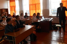 В 9 классе (16 учащихся) урок проводил учитель истории и обществознания Золотарев В.А. На уроке присутствовала глава поселения Варганова Л.Г. Внимание обучающихся направлялось к избирательному праву, вопросам формирования представительной власти. Учитель провел паралель между деятельностью государственной думы и развитием школьного самоуправления, школьных дум и ученических парламентов. В рамках урока выступала глава поселения и выразила свои пожелания о становлении каждого из учащихся активным гражданином своей земли.