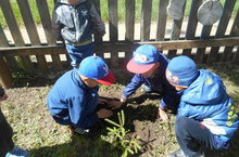 В школе существует добрая традиция: выпускники в день Последнего звонка высаживают на Аллее выпускников саженцы деревьев. В этом году молодые деревца яблони, вишни, рябины уже зацвели. К этой доброй традиции присоединились и выпукники детского сада. Трое дошколят, прощаясь с детским садом, высадили на аллее маленькие ёлочки.