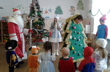 Для воспитанников детского сада прошла новогодняя елка. В гости к ребятам пришли сказочные герои, вместе с которыми можно танцевать, водить хороводы, петь песни, играть. А в каких красивых костюмах встречали гостей малыши! Здесь были и мушкетеры, и зайчики, и Бетманы, и принцессы, и пираты. Каждый мог рассказать стихотворение Дедушке Морозу и получить сладкий подарок!