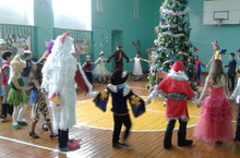 Для учащихся начальных классов состоялся утренник, на который пришли Хиханька и Хаханька, а также символы года уходящего и нового - Петушок и Собачка. Ребята водили хоровод возле елочки, пели песни, каждый класс подготовил музыкальный номер. В конце праздника всех ждали новогодние сладкие подарки.