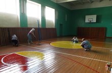 Полным ходом идут ремонтные работы в школе. Уже блестит свежими красками второй этаж, покрашены полы в рекреации первого этажа, идет ремонт и в детском саду. Сегодня покрасочные работы прошли в спортзале.