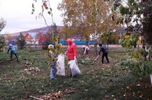 Уборка школьного двора была организована учащимися 5-9 классов. Ребята собрали листву, подмели дорожки от мусора.