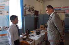 В фойе сельского дома культуры были организованы выставки декоративно-прикладного творчества детей и сотрудников нашей школы. С презентацией школьного проекта "Мобильный краеведческий музей" перед гостями выступил Марков Дмитрий.