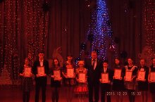 23.12.2015 наши ребята, Ионова О.(4 кл.), Сомова А.(6 кл.), Малышев Д.(8 кл.) были приглашены на муниципальную Новогоднюю Ёлку- 2015 в качестве отличников учебы, активистов, победителей различных конкурсов, а Марков Д (7 кл.) был награжден дипломом и сертификатом победителя Гранта "Наша надежда" за достигнутые успехи "Первые шаги в науке". Ребята посмотрели замечательное театрализованное представление и получили подарки. Большое спасибо организаторам такого праздника.