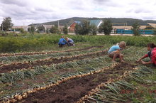 Наши школьники проходят летнюю трудовую практику. Уже собрана и посушена зелень. Сегодня мы собирали урожай лука. Он уродился крупный, не зря мы его поливали и пололи!