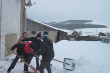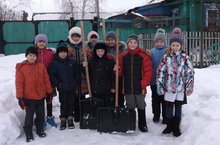 Тимуровцы 1 и 3 классов, оказали помощь в очистке снега жительнице нашего села, пенсионерке - Малининой Лидии Н.