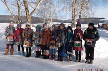 В течение каникул проводились конкурсы, игры. Большую часть времени ребята провели на свежем воздухе : катались на лыжах, на ледянках с горы.
