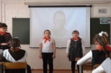 Библиотечный урок «Книги А.П. Гайдара – юбиляры 2015 года» прошел для учащихся 4-6 классов. Ребята рассказали о жизни и творчестве писателя, читали стихи, посмотрели фрагмент фильма «Тимур и его команда». Библиотекарь Лидия Анатольевна подготовила презентацию книг А.П. Гайдара, рассказала детям о пионерах, пионерском галстуке, о зарождении тимуровского движения.
