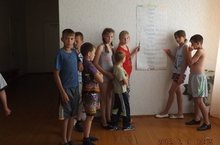 9 июня 2014 г. Прошел еще один день в лагере. После жарких выходных начали с полива и прополки грядок. После обеда провели викторину по русскому народному творчеству. В программу были включены вопросы по пословицам, поговоркам, загадкам, крылатым выражениям, рекламным слоганам, связанным с фигурами русской народной игры «Городки». Победу одержала команда «Кипиш».