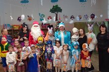 Праздничный утренник в группе ДО 28.12.2023 Замечательный праздник новогодней елки был организован для воспитанников группы дошкольного образования. Занимательный сюжет, забавные костюмы, обилие сказочных персонажей унесли малышей в новогоднюю сказку. Ребята с удовольствием водили хоровод, пели песни,рассказывали стихи. Дедушка Мороз, конечно же, оценил выступление каждого ребенка и одаривал их подарками.