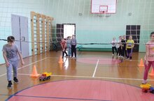 Веселые старты для учащихся начальной школв 01.11.2022 Весело в спортзале! Вдвойне весело с одноклассниками в дни осенних каникул.