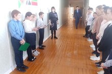 Прием в ряды юнармейцев 15.02.2022 15 февраля для обучающихся 7 класса стал знаменательным. Сегодня ребят торжественно приняли в ряды юнармейцев. Церемония посвящения в юнармейцев проходил возле памятника воина-освободителя и вечного огня. Глава района Каримов Р.Г. лично поздравил ребят со вступлением в ряды юнармейцев.