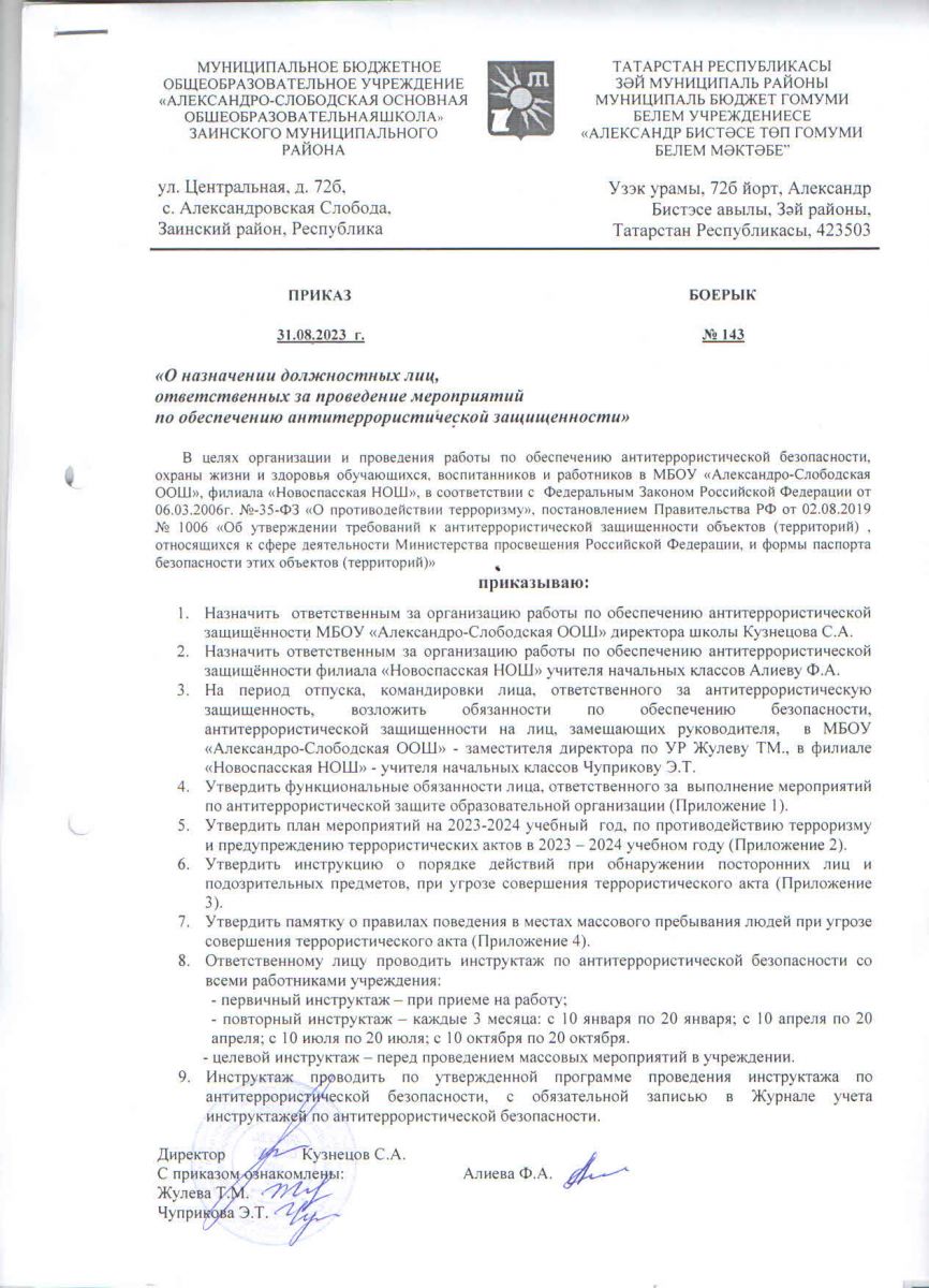 Приказ о назначении должностных лиц, отв.заобеспечение антитерр.защищенности 2023-2024