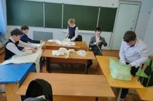 Для российских военнослужащих, участвующих в специальной военной операции на Украине, в школе была организована работа по изготовлению заготовок для маскировочных сеток.