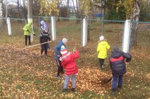 Кышка әзерлек чорында һәр кеше үзенең йорт-тирәсен,бакча-куралтыраларын чистартып калдыра. Укучылар да үзләренең икенче йортлары булган мәктәп территориясен коелган яфраклардан арындырып,кышка әзерләп калдырырга ашыга.Бу шимбә көнне дә җыелышып өмәгә чыгып яфраклардан,чүпләрдән чистарту белән мәшгуль булды балалар.