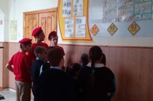 Юнармейцы познакомили учащихся с группами дорожных знаков по назначению. Воспитывали культуру безопасного поведения на улицах идорогах. -