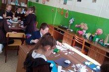 Ученики в кружке "Бумажная пластика" делали из бумаги разные цветы. Потом клеили их на разноцветные бумаги. Они работали очень усердно. У всех получились красиво.