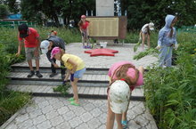 Сегодня с ребятами занимались благоустройством территории у памятника.