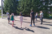 День был насыщенным и активным. После утренней зарядки и завтрака навели порядок на цветочных газонах и пришкольном участке. Рисовали цветными мелками на асфальте, поиграли в шашки-шахматы и в футбол. А вот после обеда весело прошла игра по правилам дорожного движения, где дети были в роли велосипедистов и пешеходов.