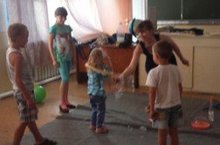Сегодня в нашем лагере праздник! В очередной раз к нам приехали гости из молодёжного центра "Космос", для наших детей они подготовили шоу мыльных пузырей и мультипликационные фильмы. Праздник получился весёлый, все были очень довольны.