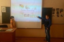 12 июня страна отмечает государственный праздник - "День России". С воспитанниками пришкольного лагеря проводилась интересная беседа об истории этого самого главного праздника. После просмотра презентации дети отвечали на вопросы викторины и поделились своими рассуждениями о будущем нашей Родины.