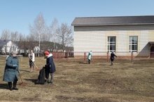 В рамках проведения весеннего экологического двухмесячника, работники школы очистили территорию школы от прошлогодней листвы и травы.